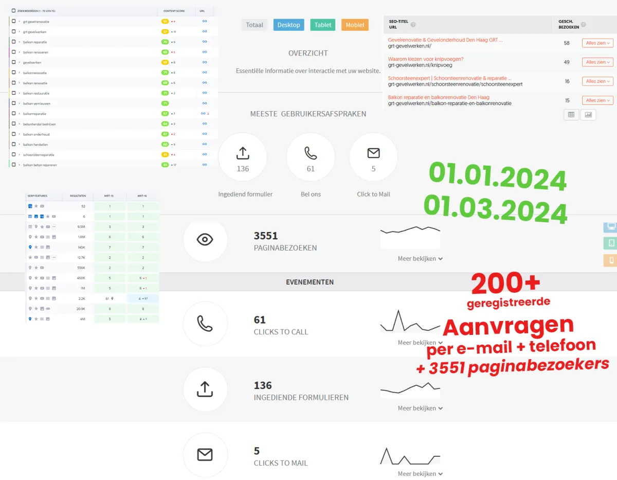 Met GRT Gevelwerken werken wij al 7+ jaar samen en verzorgen wij dagelijks zoekmachineoptimalisatie (SEO), website optimalisatie (CRO) en en google (PPC) ads.