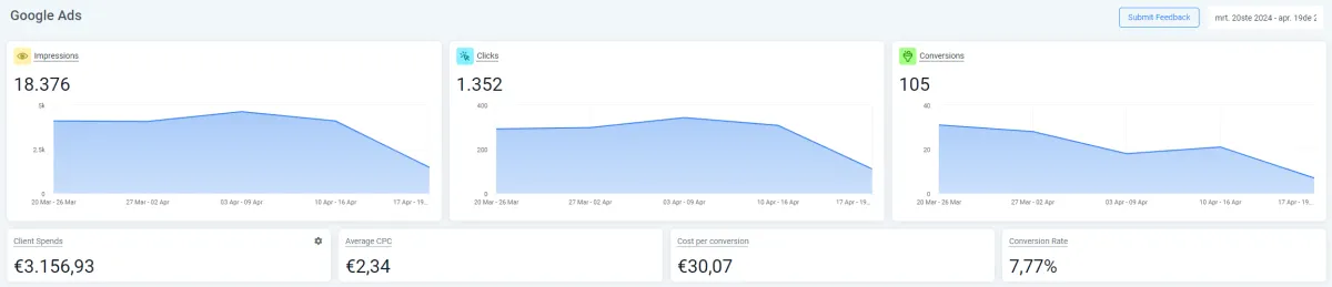 ✅ We sturen jou elke week een prestatierapport, zodat jij precies kunt zien hoe jouw campagne presteert, ook kan je 24/7 live meekijken in jouw persoonlijke dashboard.